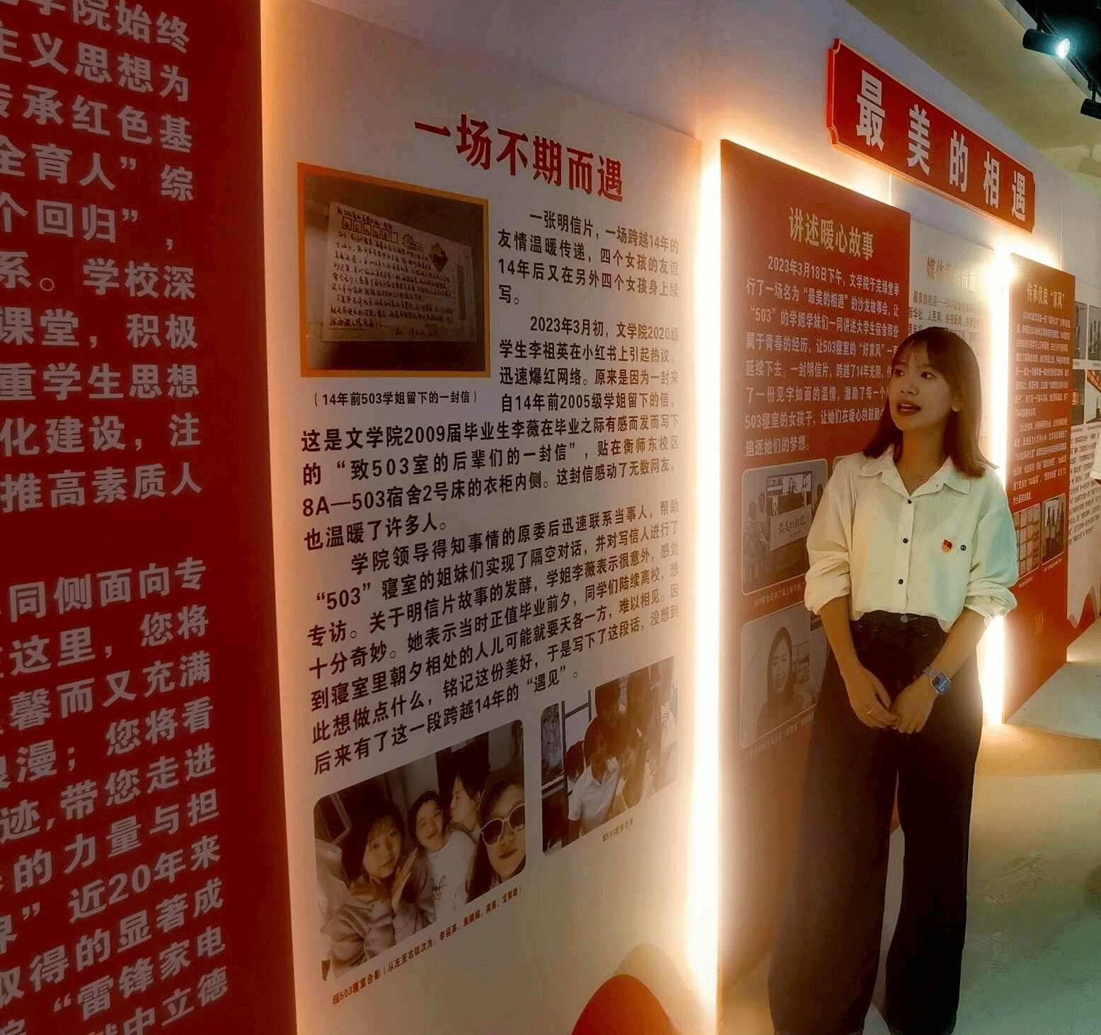 我院“最美的相遇——503寝室的温暖故事”在立德树人分馆中被重点展示,2024级研究生屈林地为大家再次讲述503的暖心故事。党总支张云峰书记指出503寝室的美好故事让503不仅是一个寝室名称,更是一个符号,让好故事、好精神得到传承,让好故事成为好课堂,走进更多大学生心中,最后号召大家“传承优良家风,让503之花开遍衡师”。