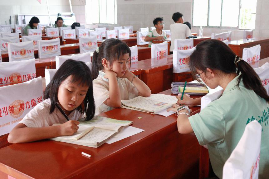 为切实贯彻湖南省第四届“芙蓉学子·乡村振兴”公益计划暨“三下乡”社会实践活动,服务团开设“一对一”课后辅导课堂。志愿者们为孩子们辅导语文、数学等学科作业,并通过经典诵读、成语接龙等互动游戏激发其学习兴趣。一名五年级学生感慨:“志愿者李子威哥哥教会我用故事记古诗,现在背课文再也不怕了!”此外,团队将防溺水、防性侵安全教育知识融入课后活动,全方位筑牢儿童安全防线。