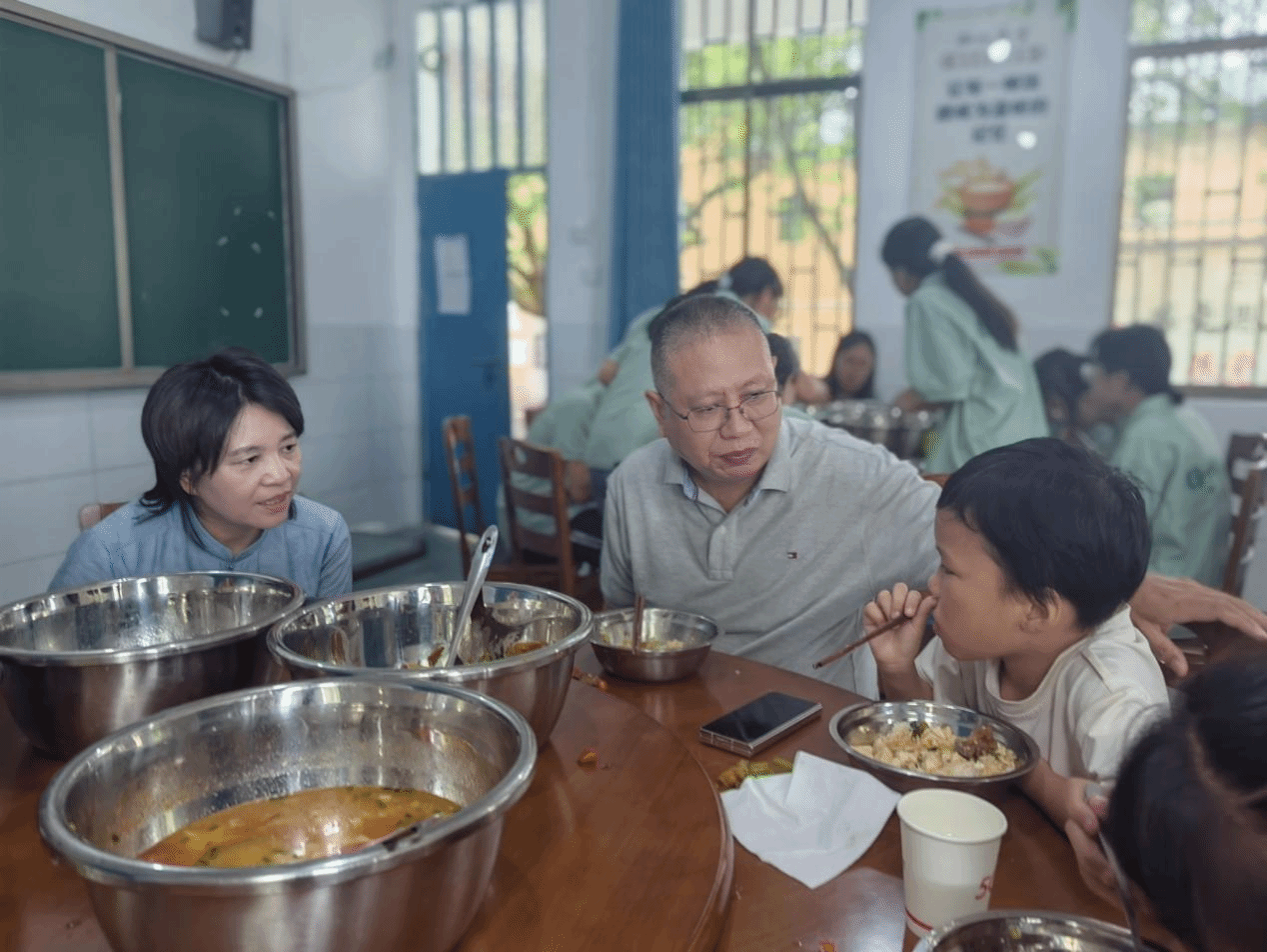 随后,贺桂香一行深入学生寝室与食堂。在寝室,她仔细查看住宿环境,关切询问志愿者与孩子们“住宿习惯吗”“晚上睡觉热不热”;在食堂,她详细了解饮食搭配与卫生状况,强调“孩子们正处于成长关键期,务必保证营养均衡、食品安全”。罗斌结合学校管理实际,为实践团优化食宿安排提供了具体建议,贴心的指导让志愿者们倍感温暖。