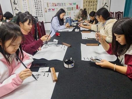 墨香萦绕的书法教室里,同学们执笔、蘸墨、临帖。在老师的悉心指导下,从规范执笔姿势、研习基本笔画开始,沉浸式体验书法的独特意趣。笔锋提按转折间,一颗颗浮躁的心渐渐沉静;一笔一划落纸时,传统文化的宁静致远在心头悄然铺展。