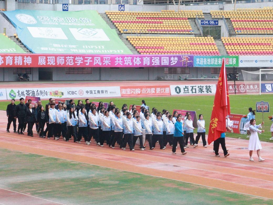 为展现衡师学子青春风采,激发学生主动锤炼体育素养的热情,11月11日,衡阳师范学院于衡阳市体育中心举办了第26届田径运动会开幕式。上午8点,伴随着激昂的音乐声,开幕式正式拉开帷幕,各学院方阵队依次入场——文学院方阵队百余名成员迈着整齐矫健的步伐,喊出“知行并进,以文化人;守正创新,勇担重任。德才兼修,以教立身;矢志报国,不负青春。”的响亮口号走向主席台,将“知行并进,以文化人”的学院风貌展现得淋漓尽致。