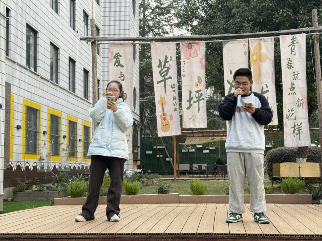 固定演唱的余韵尚未消散,自由演唱环节便如约开启,瞬间点燃了全场的热情火焰。文院学子们纷纷举手、踊跃登台,让歌声成为此刻最鲜活的语言:有人即兴开唱,用灵动婉转的旋律勾勒出独属自己的舞台风采;有人邀约挚友并肩合唱,和声交织间,同窗情谊也随音符缓缓流淌;还有人点唱新年主题曲目,将对彼此的美好祝愿,都揉进了悠扬的歌声里。没有预设的脚本,唯有随心而发的欢唱,此刻的衡师里,成了歌声翻涌的海洋。每一段旋律,都藏着对旧岁的温柔不舍;每一句歌词,都盛满对新年的无限憧憬。