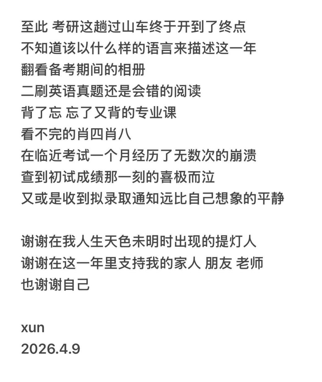 考试那两天,上午考完到下午开考间隔很短,扣掉吃饭、赶路,基本没多少休息时间。我们寝室没考研的室友,都会提前帮我把饭点好、放在桌上,特别暖心。我能顺利上岸,真的离不开一路上支持我的每一个人。