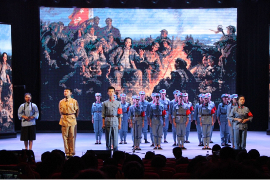 整齐的军装,挺拔的身姿,肃穆深沉的背景乐,都在人心中激荡起红色革命岁月里的回声。生命科学与环境学院的《换了人间》向观众缓缓展示了不同时期伟人毛泽东的独特故事,每一首诗里都藏着不同的寓意,那跌宕起伏的声音传达了毛泽东诗中的故事。