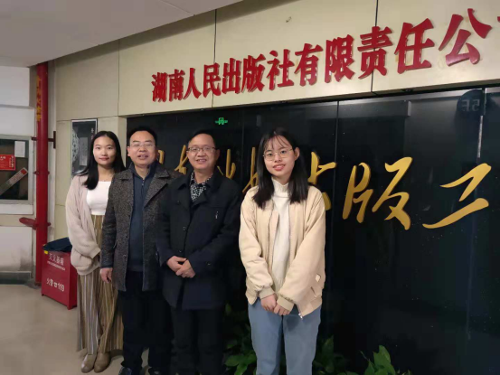 图4:在湖南人民出版社与实习生李小纯、夏爱金合影