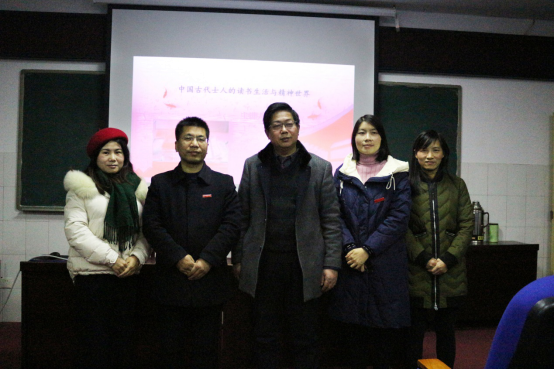 12月12日,王友胜教授于文d603开展了以“中国古代士人的读书生活与精神世界”为题的学术讲座,文学院院长任美衡到场主持,2016汉二班全体同学到场聆听。