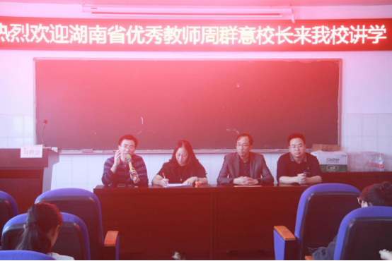 5月20日,文学院于文D603召开“语文教学策略之文本探秘——走进文本深处,探究文本秘密”专题讲座。湖南省优秀教师周群意校长应邀担任主讲嘉宾,文学院党总支书记邓玉久、副院长杨旭明以及邓水平老师出席本次讲座,2017、2018级汉语言文学专业学生代表到场聆听。