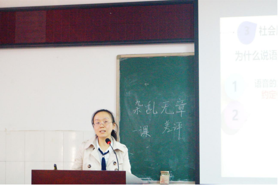 曾宝芬老师首先向同学们抛出一个问题:什么是语音?随即,她提出“语音是语言的物质外壳”这一理论概念。